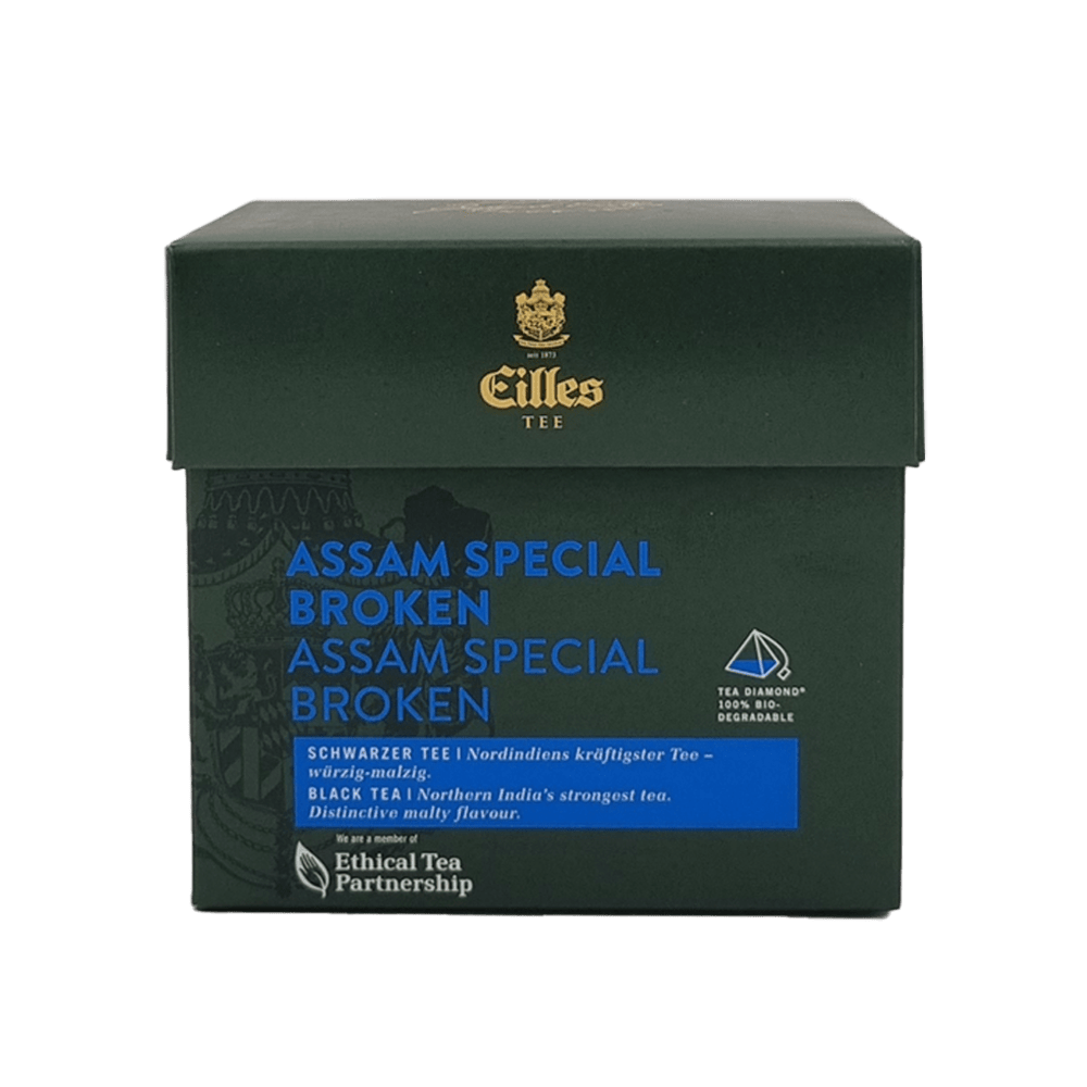 Liście EILLES TEE Diamond Assam Special Broken są pakowane w saszetki w kształcie diamentów. Dzięki takiemu rozwiązaniu woda w optymalny sposób dociera do składników, które w pełni uwalniają bogaty smak, wykwintny aromat oraz intensywny kolor. Saszetki wykonane są z delikatnego materiału, który sprawia, że można cieszyć się czystym smakiem naparu.