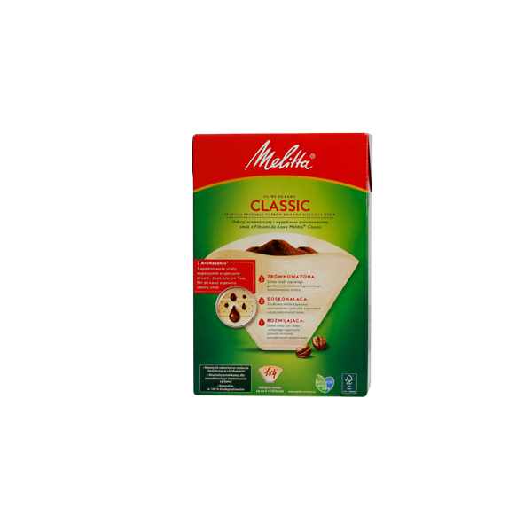 Papierowe filtry Melitta w rozmiarze 1×4, które umożliwiają uzyskanie aromatycznego napoju z ekspresu przelewowego.