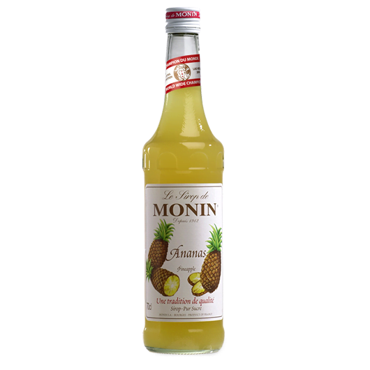 Syrop MONIN o słodkim smaku świeżego ananasa. Wyróżnia się intensywnym, egzotycznym aromatem.